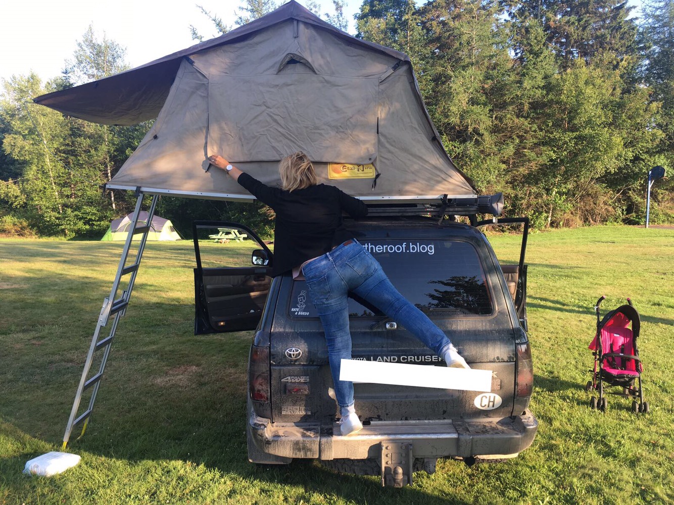 I do realize not many of you do own a roof-tent (pop up tent) as well as not having an almost 2 meters tall partner, but have you ever tried to open (or worst close!) such a structure?!