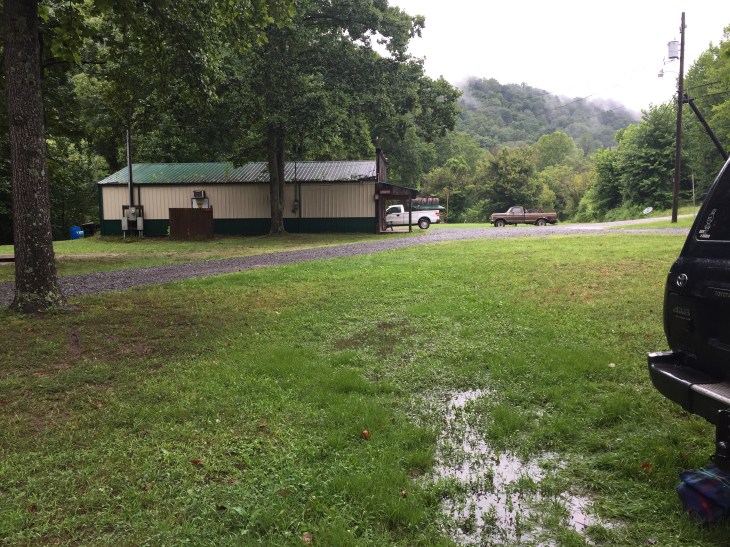 We just had the time to have dinner when the forecasted rain started. The night went by wet and fighting mosquitoes. We abruptly woke up at the sound of a diesel train slowly carrying a huge load of coal up the hill, nevertheless a change of sound to the trucks using their Jacobs-brake downhill!