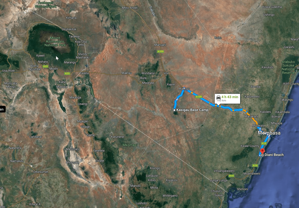 Departing near Diani beach, our first destination is the Amboseli National Park (southern Kenya).